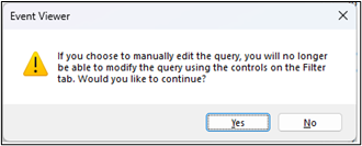 Click Yes. You’ll then be allowed to write a filter using XML’s XPath syntax. Copy the following excerpt of code and paste it in the window: