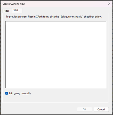 Here’s where things change. Instead of doing what you did the previous time, go to the XML tab and check the Edit query manually box in the lower-left corner of the window:
